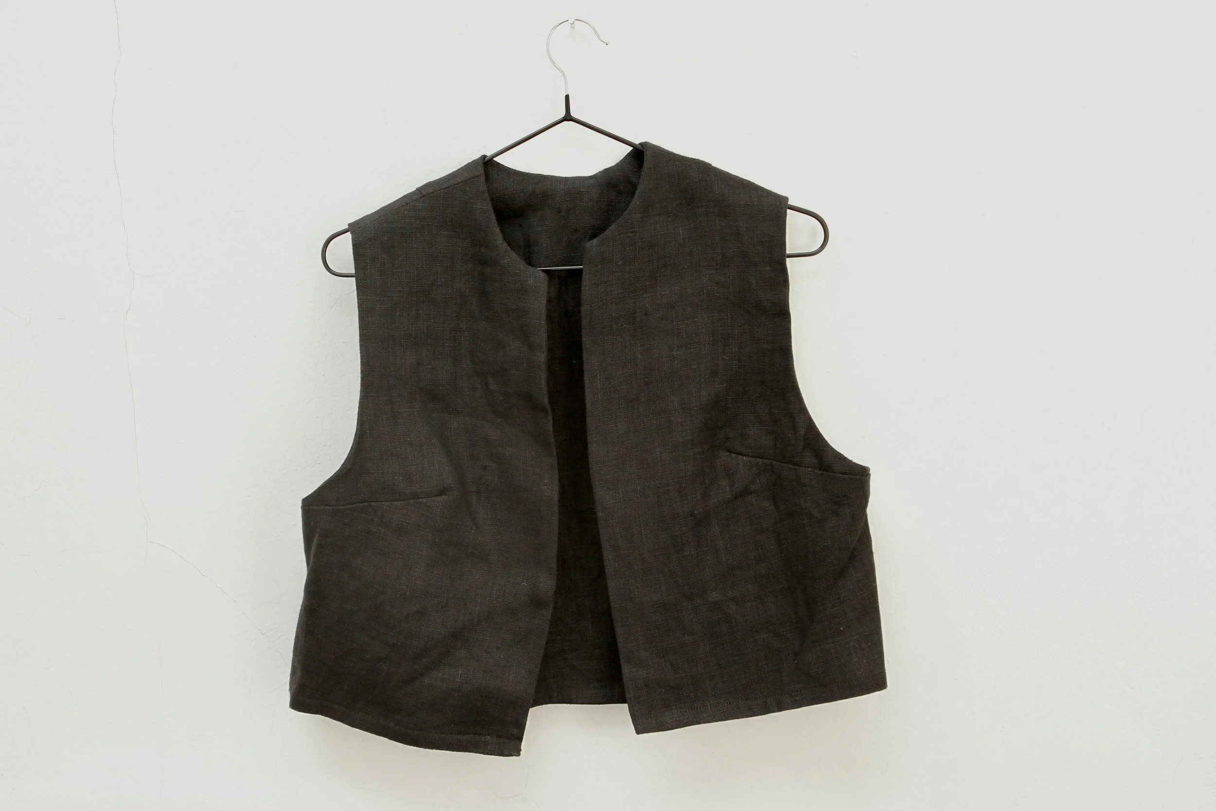 cropped vest - off white linen jumpsuit cropped vest - black linen cropped vest - white stamped cotton tote - natural cotton